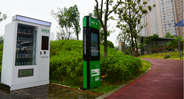 長興湖健康主題公園智慧跑道融合了5G、大數據、物聯網、云計算等智慧技術,沿途設置了5個智能計時點,每間隔500米一個,可自動記錄運動數據。其中2個為綜合服務點,可為運動者提供計時打卡、運動芯片領取、隨身物品存取、紀念品領取、運動器材租賃、運動飲品購買等多項體驗。